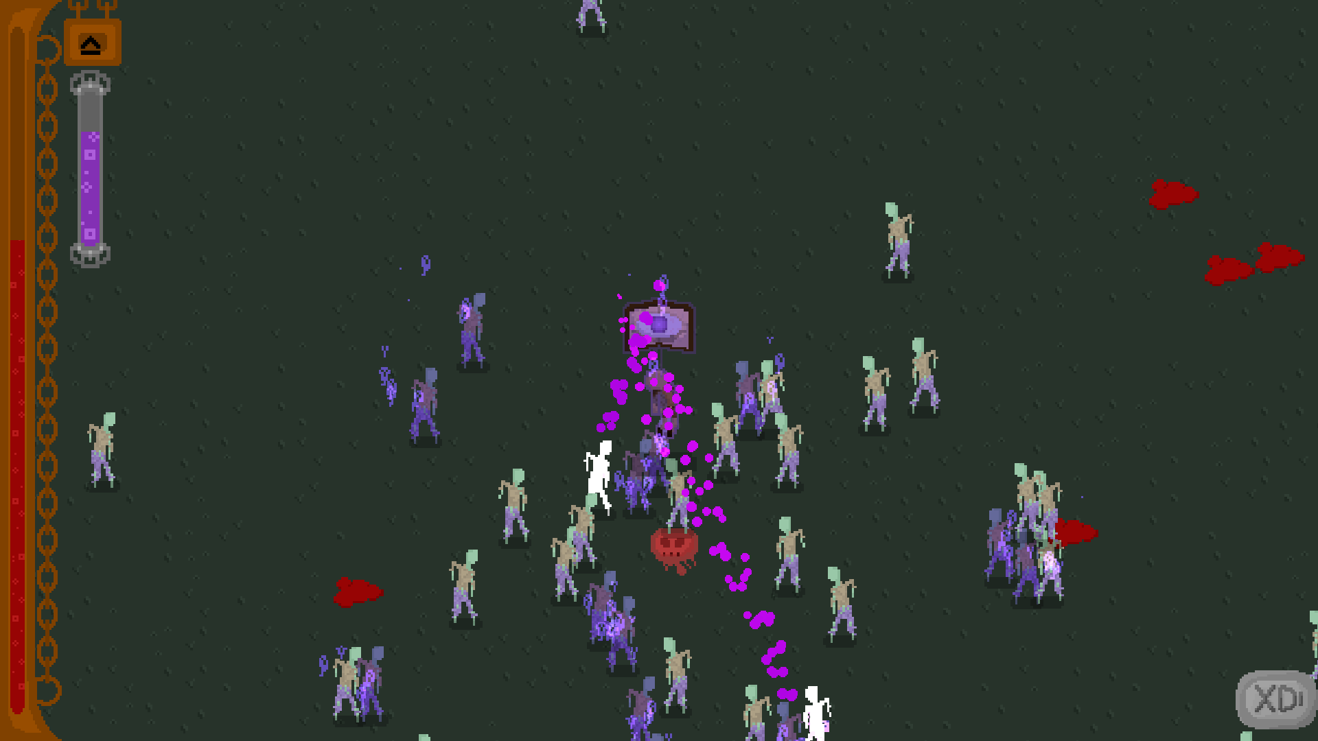 In this game, you play as an ancient, living tome possessing a human. At each level up, you need to choose a new page that offers you an upgrade, a new attack, or a bonus to defend yourself against the monsters.